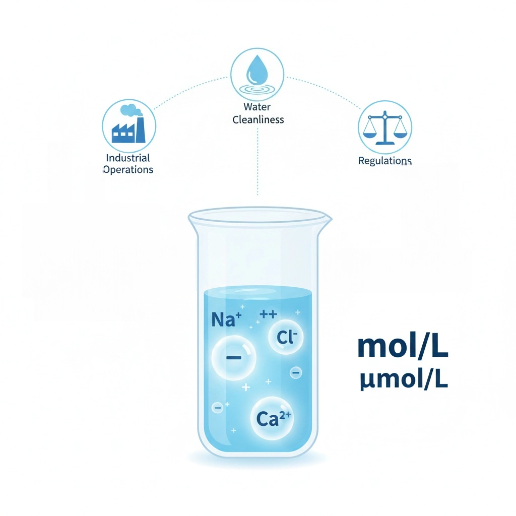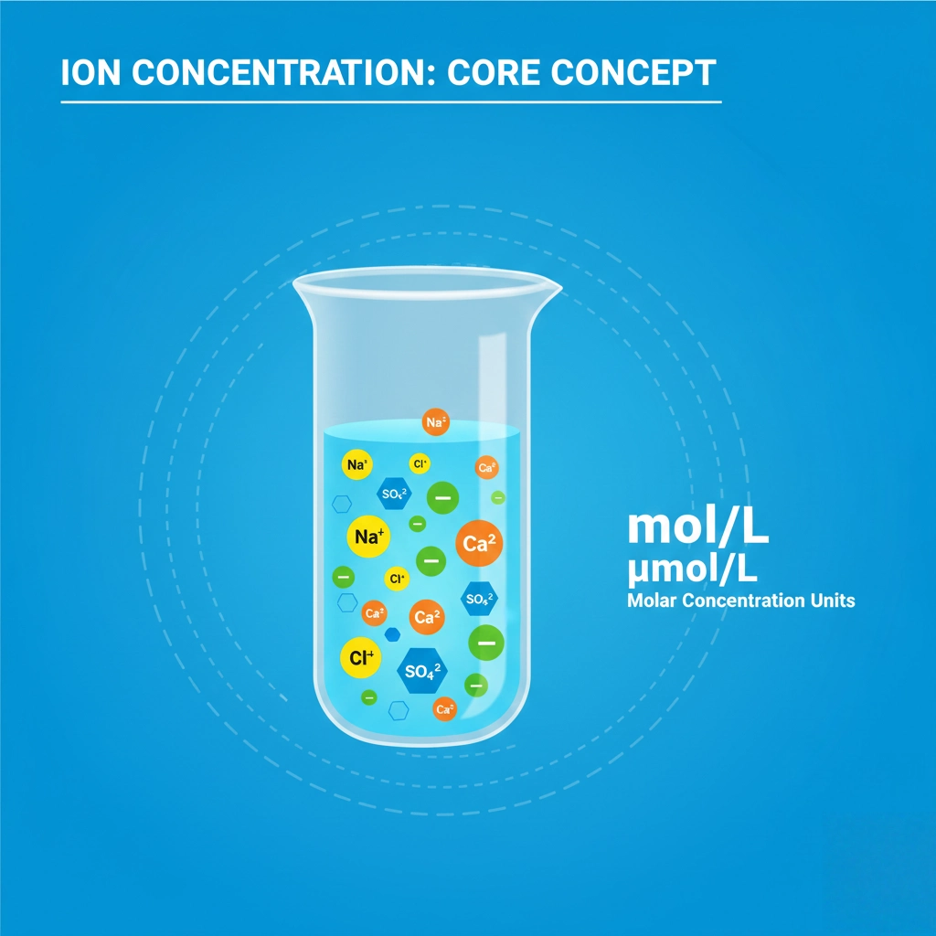 The ionic concentration of a solution is the number of particular ions in a certain volume, which is commonly quantified in mol/L or μ mol/L. It is a key technique to detect how chemically stable a solution is, and it directly affects the cleanliness of water, the stability of industrial operations, and following environmental rules.